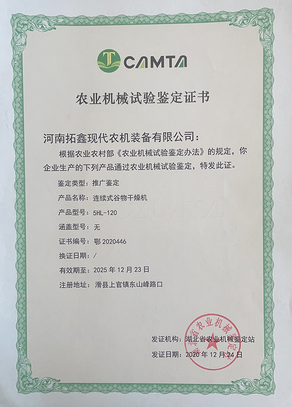 農(nóng)機(jī)試驗(yàn)鑒定證書